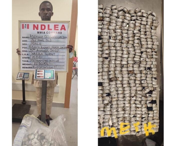 “The 11.90kg consignment was brought to the SAHCO export shed of the airport on Friday, August 5, by a freight agent, Adekunle Oluwapelumi Paul, 32, from Yagba West Local Government Area (LGA), Kogi State.
