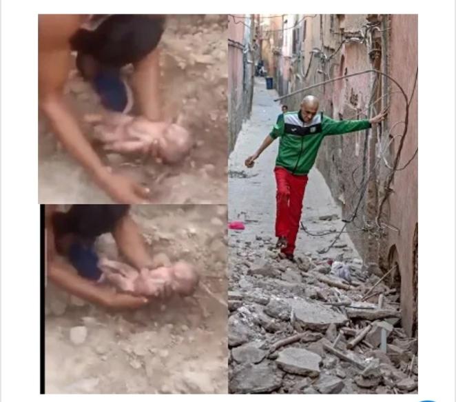 In a heart wrenching and awe-inspiring moment captured on video, a compassionate individual rescued a newborn baby from the rubble left by the earthquake.