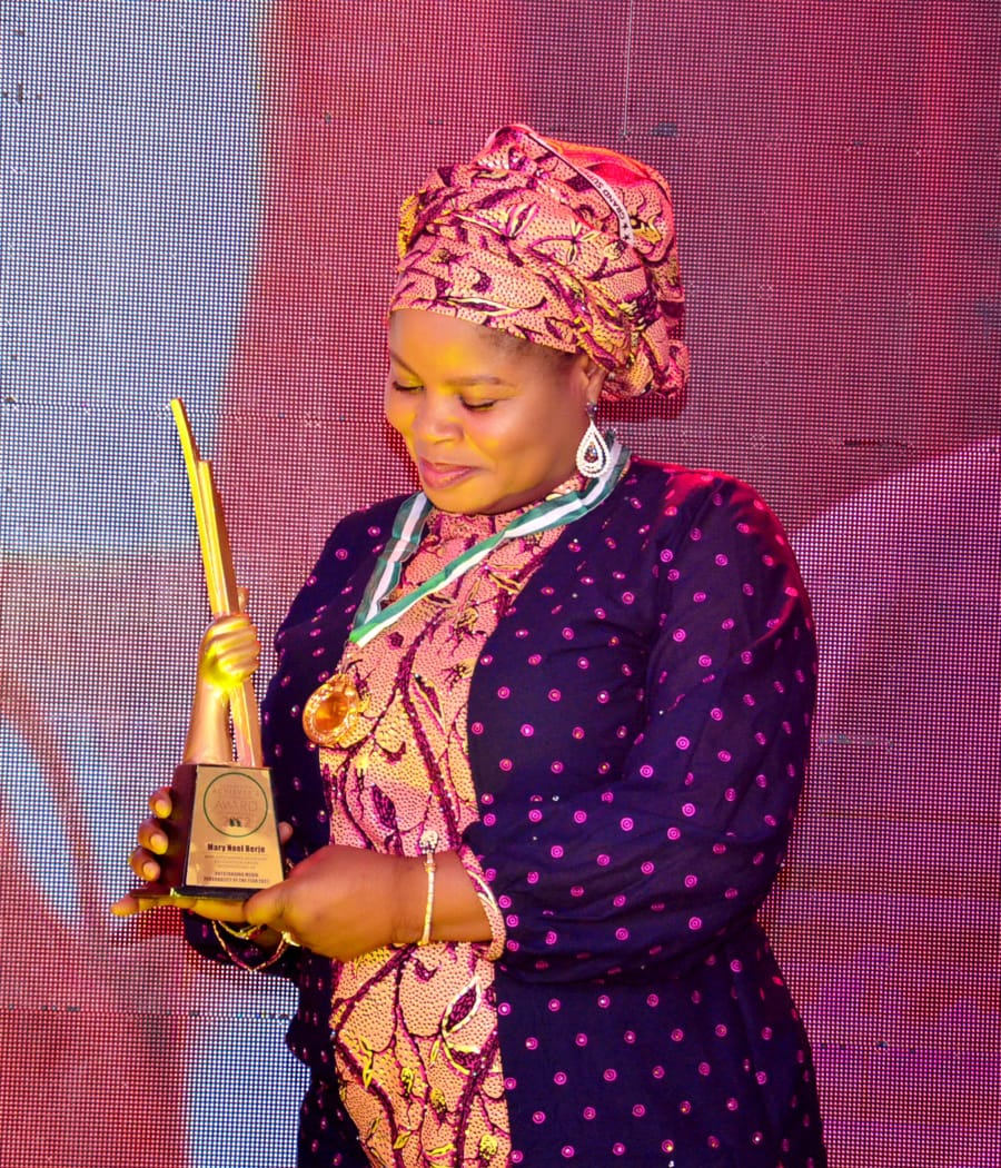 The Outstanding Media Personality of the Year (2022) award is one among many others received by Mary Noel-Berje following her humanitarian services to women, children, and youths through her Ayewosai Global Foundation.