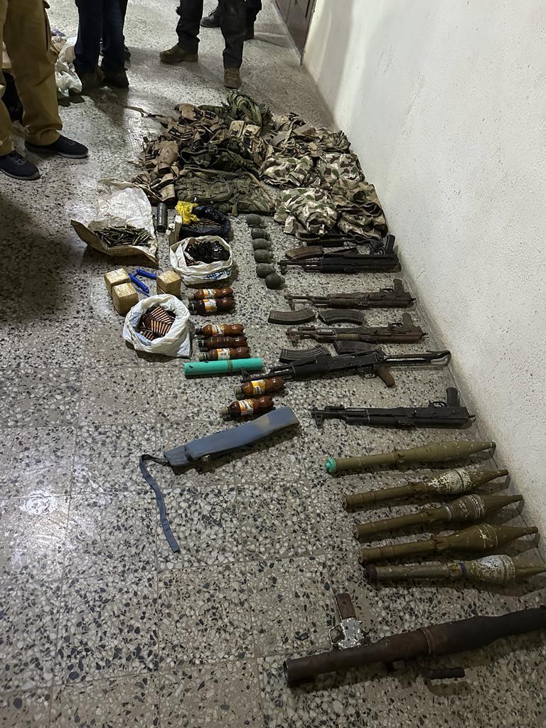 These weapons included five AK-47 rifles, an RPG, hand grenades, camouflage uniforms and materials for making Improvised Explosive Devices (IEDs).