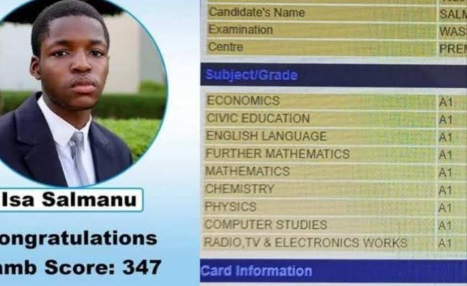 In addition to his outstanding performance in the WASSCE, Isa Salmanu also attained an impressive score of 347 in his Unified Tertiary Matriculations Examination (JAMB-UTME).