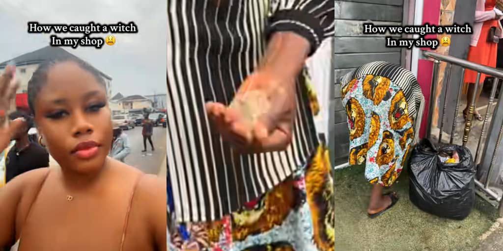 A Nigerian entrepreneur has sparked heated debate online after claiming she caught a woman allegedly leaving suspicious items outside her store objects she believes may have been tied to spiritual or traditional rituals.