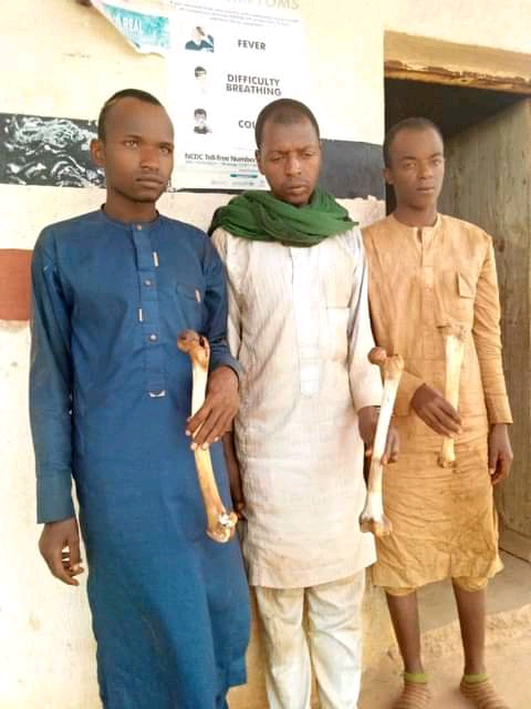 According to an eye witness Jamilu Buba, the suspects confessed that they removed the human bones after digging graves from a cemetery in the area.