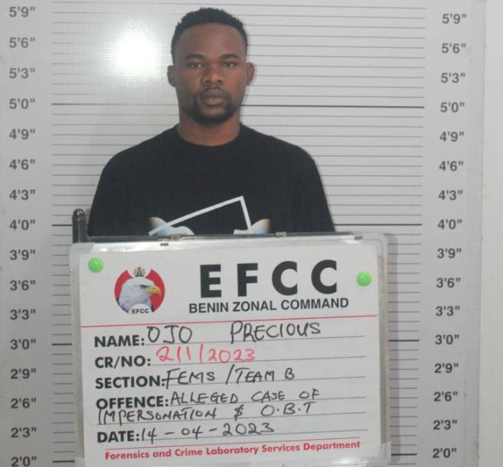 The Economic and Financial Crimes Commission (EFCC) has arrested an internet fraudster, identified as Precious Ojo also known as Obago in Oghara, Delta State for defrauding the US government the sum of $268,000.