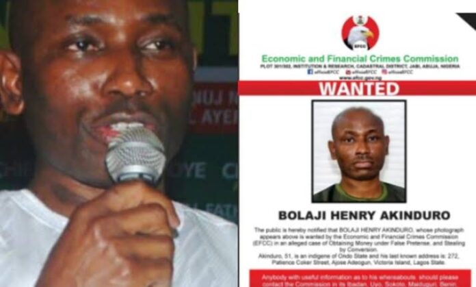 The EFCC announced on its X handle on Saturday that Akinduro is wanted in connection with fraud allegations made by Mr. Femi Olushakin.