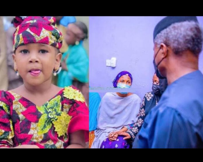 Nigeria’s Vice President, Professor Yemi Osinbajo, on Tuesday visited the family of the late five-year-old girl, Hanifa Abubakar, in Kano, who was kidnapped and murdered by her school teacher, last December.