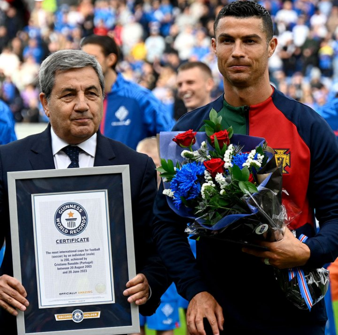 Portugal international, Cristiano Ronaldo on Tuesday became the first footballer in history to play 200 times for his country as recognised by the Guinness World Records.