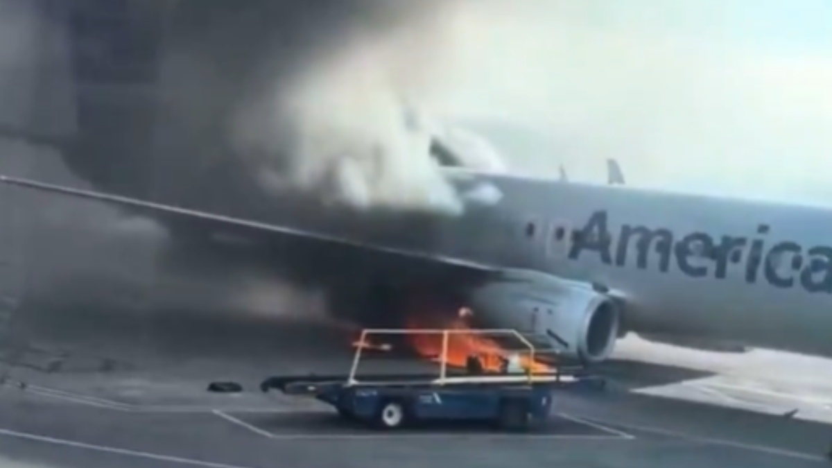 Panic ensues as plane carrying 178 passengers catches fire following emergency landing