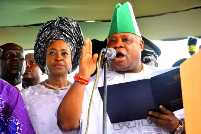 The State Chief Judge, Adebola Adepele Ojo administered the oaths of allegiance and office on Governor Ademola Adeleke and his deputy, Adewusi.