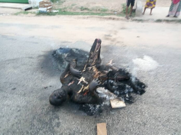 ”So I peeped through the window and saw some strange people. I quickly shouted Thief! Thief! when the criminals noticed that people were coming to help me, they ran away through the back door but one of the criminals was unlucky, he was caught and beaten to death and the mob subsequently set his corpse on fire”, he narrated.