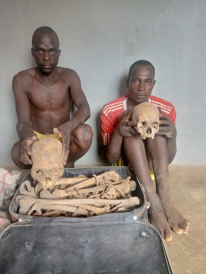 The operatives of the Adamawa State Police Command have apprehended two suspects, Raji Silver and Nodji Kodjiin, who were in possession and trading in human skulls and several human bones in Garware village, Fufore Local Government Area of the state.