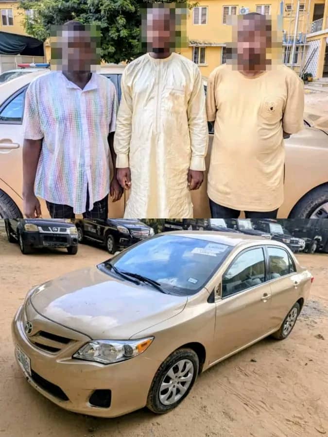 The Kano State Police Command has arrested three notorious suspects in connection with a car snatching incident. On 7th July 2025, at about 01:45 pm, a report was received from a car dealer, Abdulqadir Abdurrahman, a male resident of Gadan Kaya Quarters, Kano, about a notorious thief and car snatcher, Shamsu Yusuf, popularly known as “Chitta”.