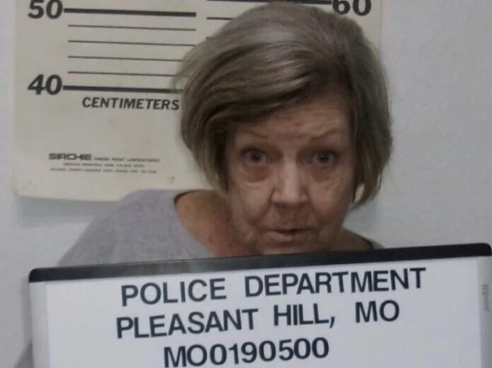 A 78-year-old woman has been arrested and charged with theft after police caught her fleeing from a Missouri bank with cash scattered on her car’s floorboard.