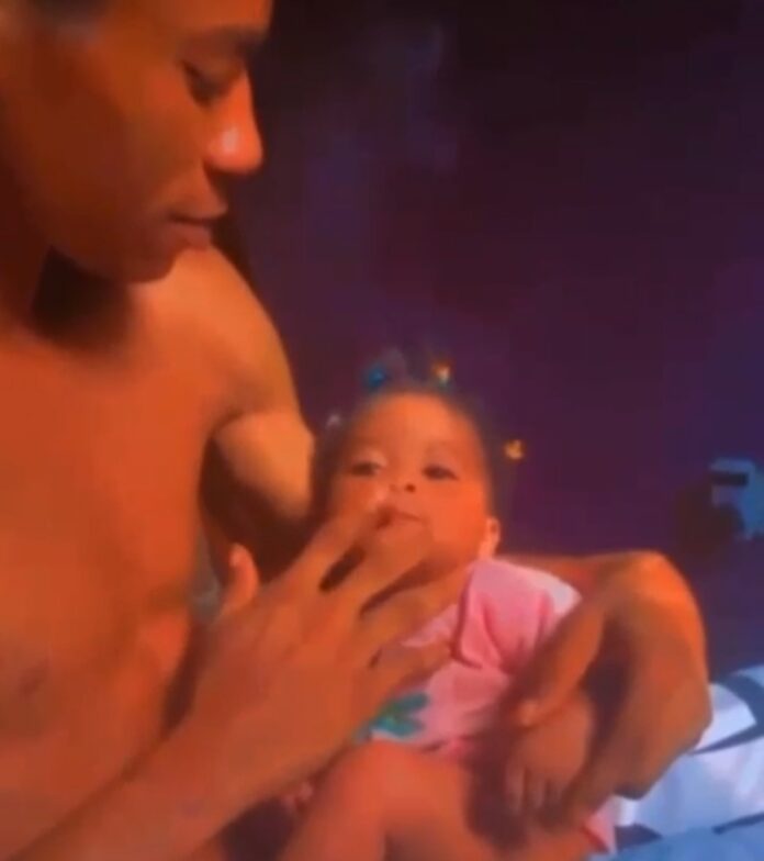 A video of a young man, yet-to-be-identified, smoking with a toddler went viral Tuesday morning causing an uproar on social media. The video was recorded by a lady who was heard giggling in the background.