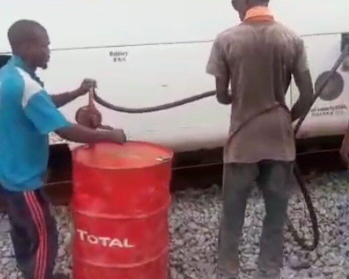A passenger, Isaiah Obadare, on the train who gave an update shared how a train is being refuelled manually in a video.