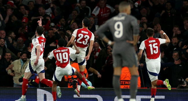 Arsenal stormed to a stunning 3-0 win over Champions League holders Real Madrid as Declan Rice’s free-kick masterclass left the Gunners within touching distance of a place in the semi-finals.