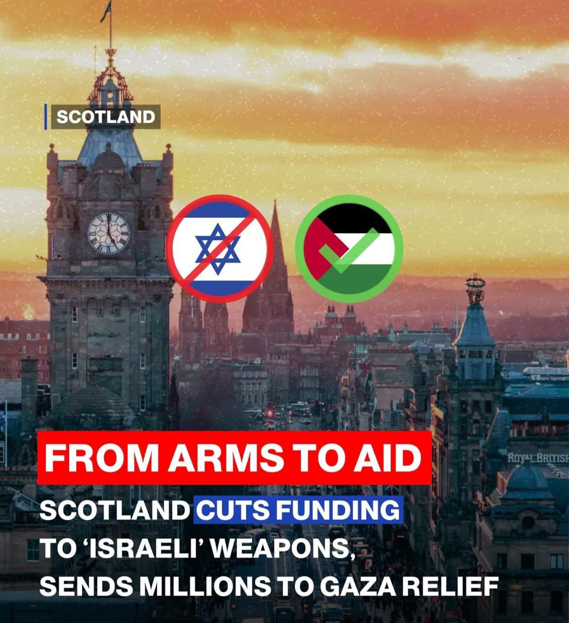 Scottish Government halts cash from arms companies supplying Israel, flies Palestinian flag