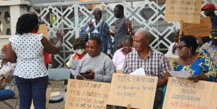 The retirees, who are from the old pension scheme prior to the 2004 introduction of the Contributory Pension Scheme, gathered to demand the immediate payment of their accrued pension rights.