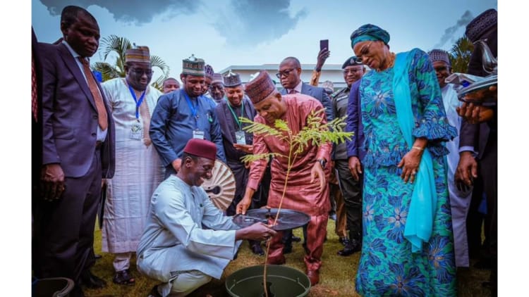Nigeria’s Vice President, Senator Kashim Shettima and First Lady, Senator Oluremi Tinubu, have planted trees in the Asorock Villa to demonstrate activities of the Great Green Wall Initiative as an Emergency Rescue Operation.