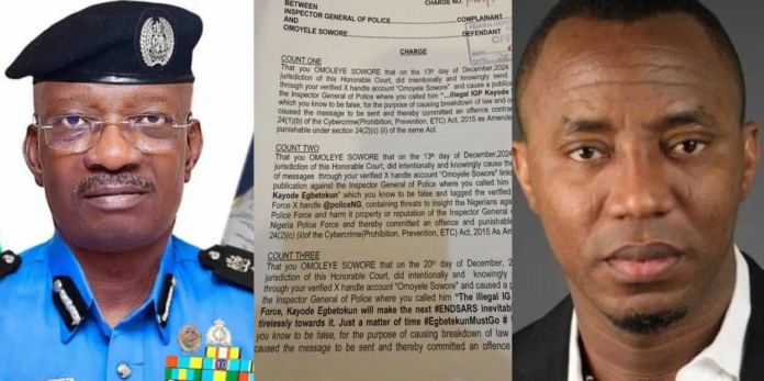 The first charge states that on December 13, 2024, Sowore knowingly sent messages through his verified X (formerly Twitter) account, referring to the IG as “illegal IGP Kayode Egbetokun,” which the police assert was false and meant to disrupt public order.