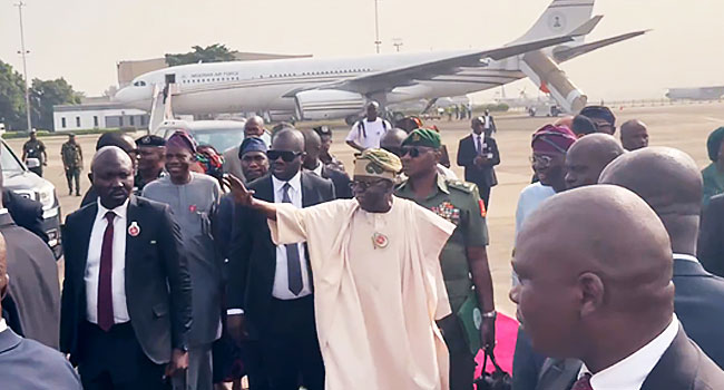 Tinubu arrives Lagos to celebrate Christmas, New Year holidays