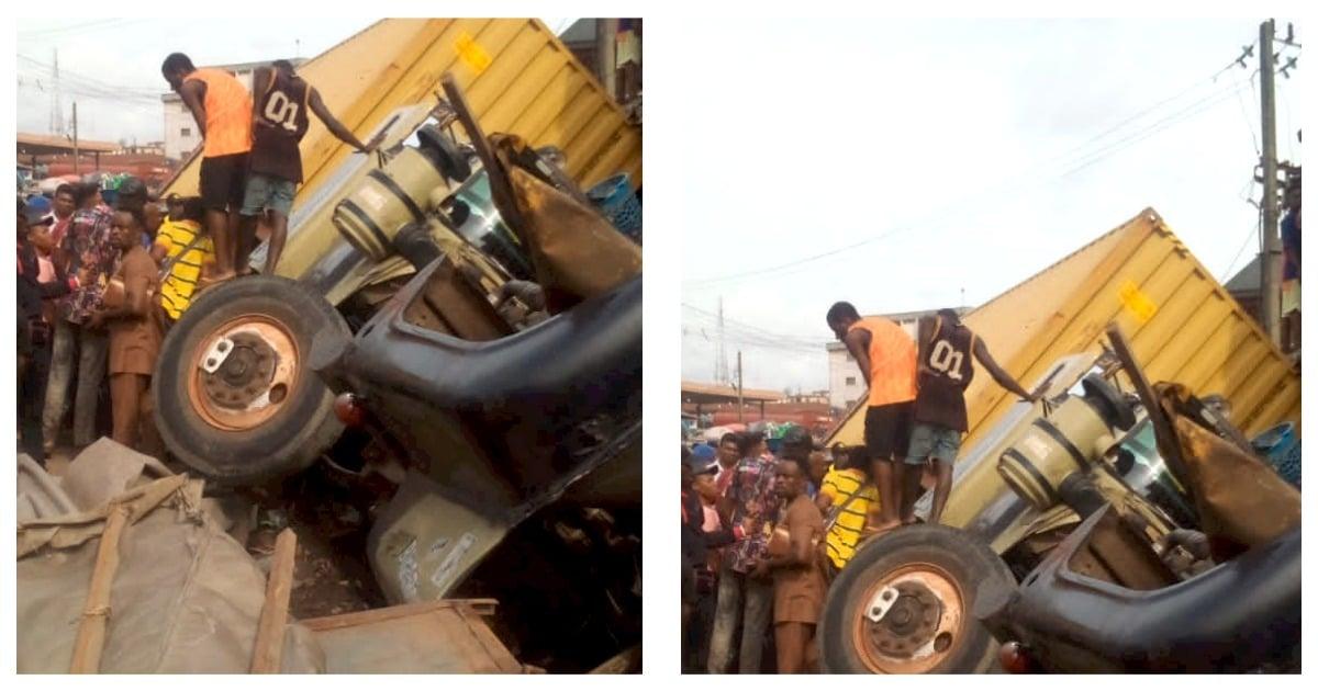 An unidentified woman lost her life when a container fell on her from a trailer in the busy Eze-Iweka area of Upper Iweka Bus Stop on the Onitsha-Owerri Road in Anambra State.