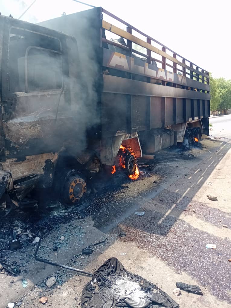 However, the fatal accident triggered a riot as some aggrieved youth in the area reacted violently by burning the truck with the goods it was carrying just as they attacked the Divisional Police Headquarters in the area and injured several officers on duty including the Divisional Police Officer (DPO) through hurling stones and other dangerous objects at them with a view to vent their anger over the awful incident.