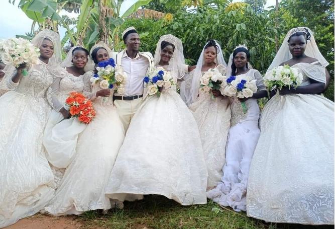 Ugandan businessman makes history, marries seven wives on same day (Photos)