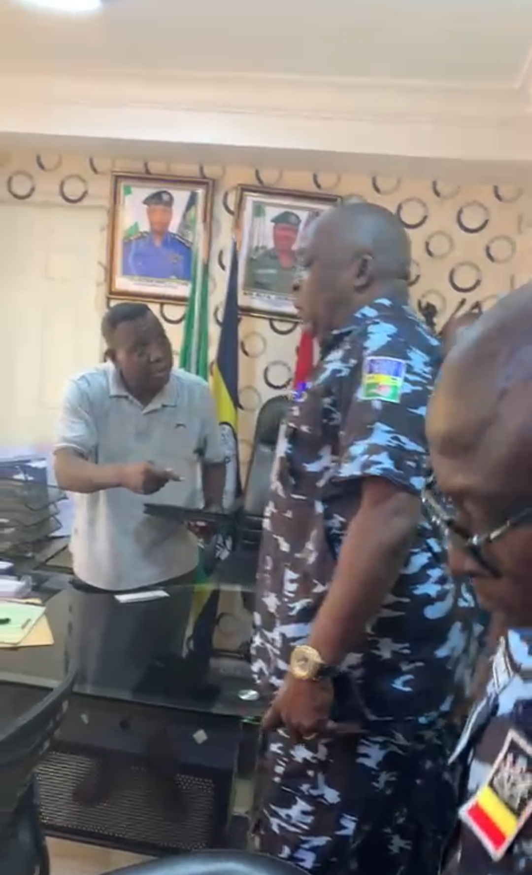 The policemen were heard on the video saying: “Oga, get out of this office.