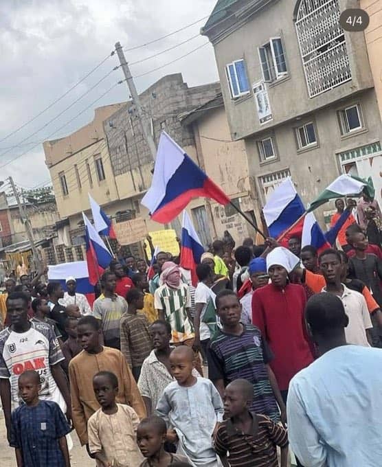 The statement said, “The Embassy has noted the reports in Nigerian media and the circulation of videos and images in digital media depicting protesters in northern states of the country carrying Russian flags and chanting slogans to Russian President Vladimir Putin.