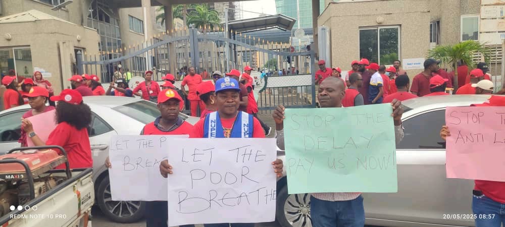 Members of the Trade Union Congress (TUC) of Nigeria have staged a protest at the Federal Ministry of Finance in Abuja, shutting down activities at the premises.