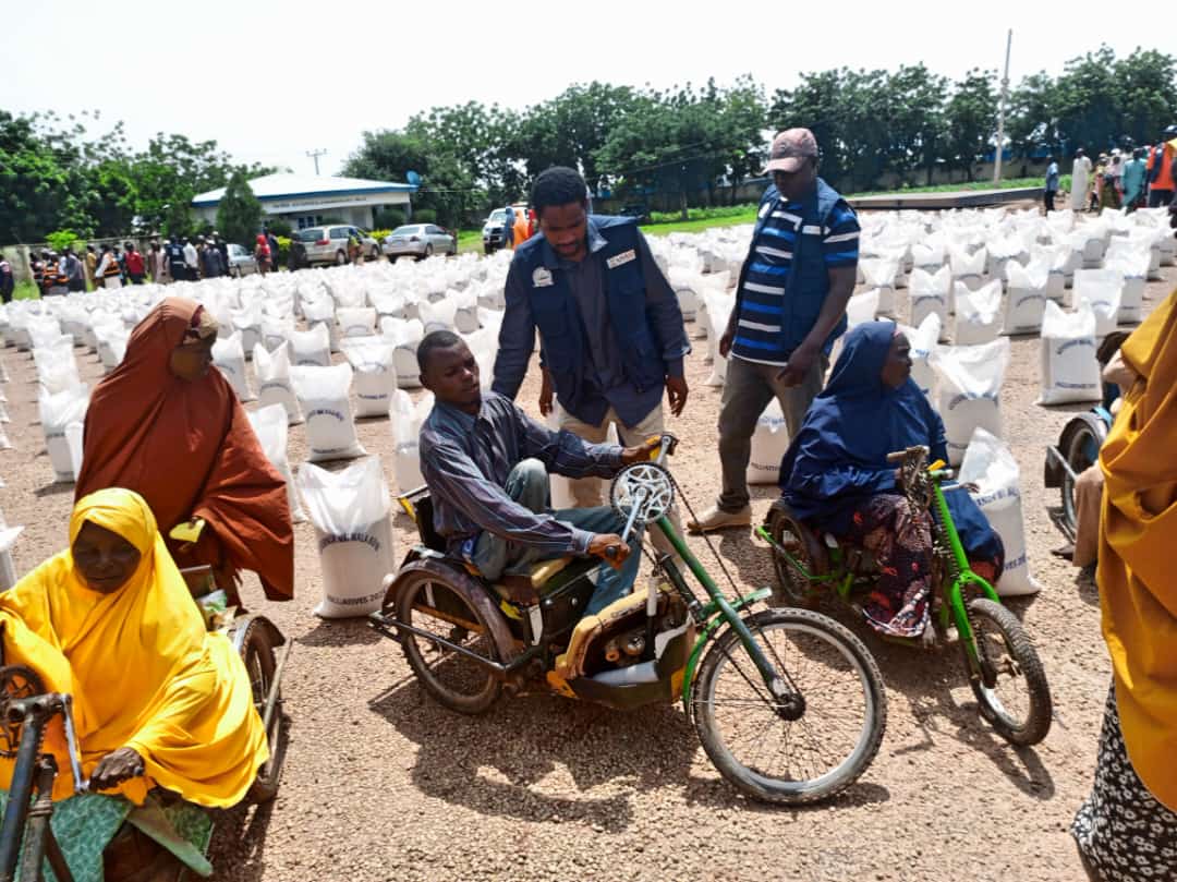 Hauwa Ibrahim, a resilient person who faces physical challenges, expressed belief that the ongoing distribution of palliatives will enormously mitigate the impact of subsidy removal in the country, and conveyed heartfelt appreciation to both YOSEMA and Governor Buni for their efforts.